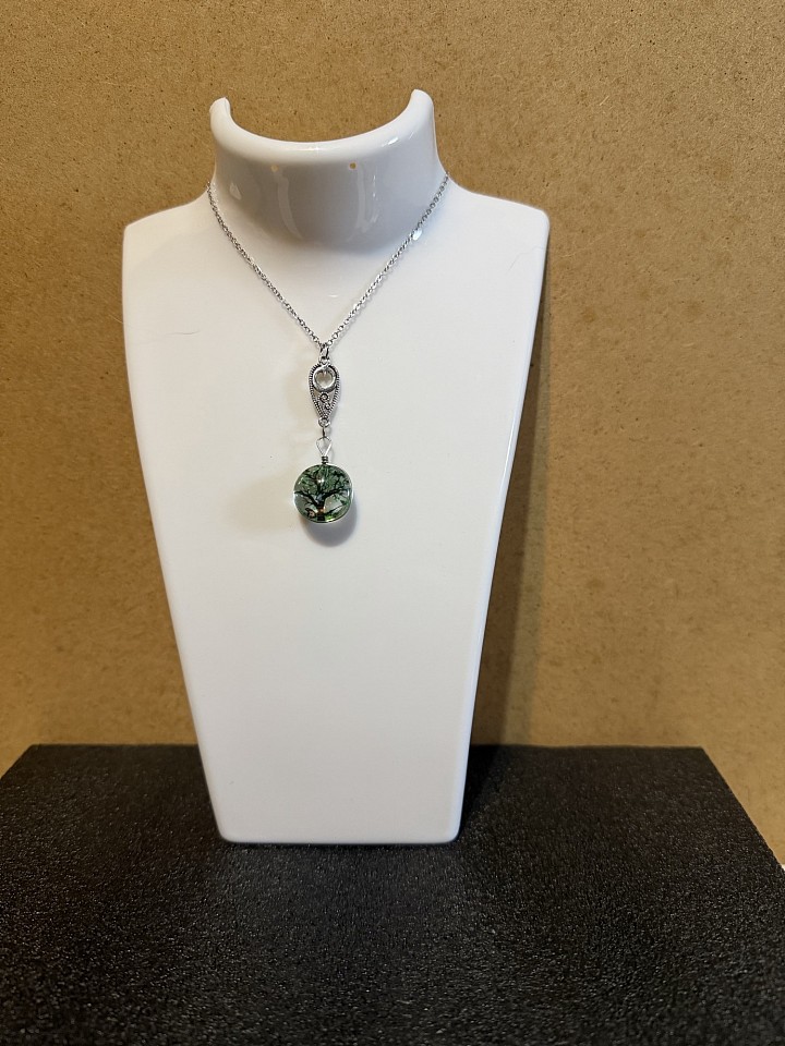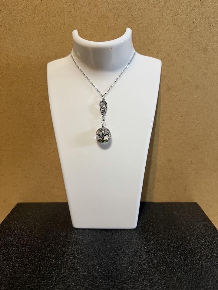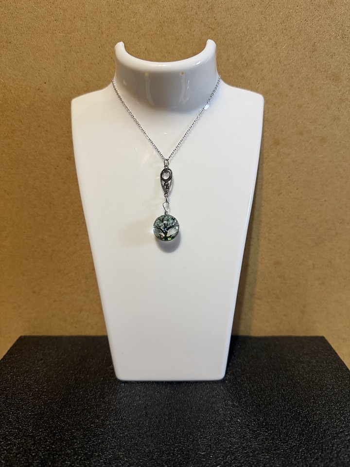 Collier avec cercle en verre, arbre de vie à l’intérieur